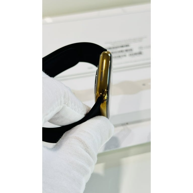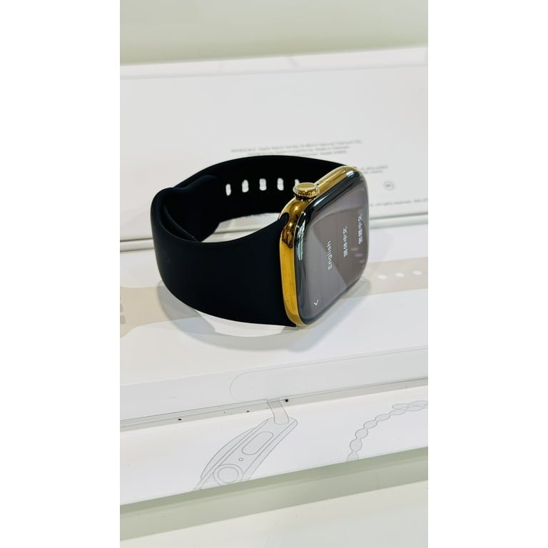 Custom Bright Gold 46mm iWatch Series 10 with a Black Sport Band Gold Plated Pin 2024 Release
